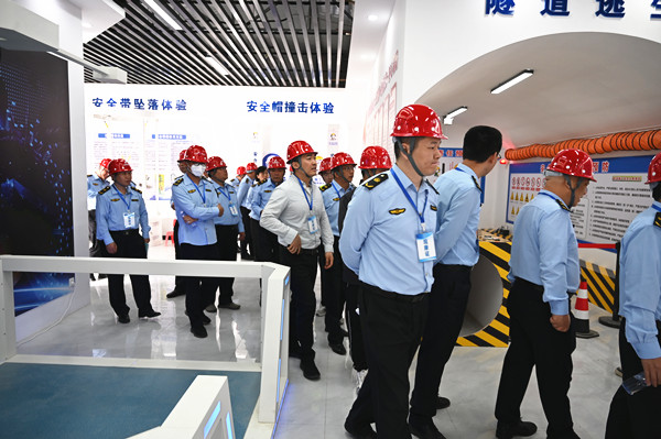 觀摩團(tuán)一行來(lái)到隧道洞口的安全教育VR體驗(yàn)中心,觀看了高空墜落、物體打擊、觸電、坍塌和洞內(nèi)事故等場(chǎng)景模擬,直觀感受違章作業(yè)帶來(lái)的直接傷害。在隧道施工現(xiàn)場(chǎng),觀摩團(tuán)認(rèn)真聽(tīng)取了現(xiàn)場(chǎng)負(fù)責(zé)人對(duì)工程概況及項(xiàng)目進(jìn)展的情況介紹,對(duì)營(yíng)嶺隧道項(xiàng)目質(zhì)量安全管理工作以及階段性成績(jī)給予充分肯定,并就隧道施工新技術(shù)應(yīng)用、山區(qū)高速品質(zhì)提升等方面進(jìn)行了交流討論。