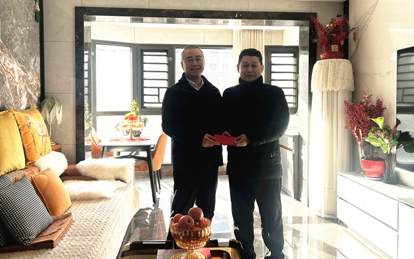 集團公司領(lǐng)導來到退休干部家中,為他們送上新春祝福,希望老同志在保重身體的同時,繼續(xù)發(fā)揮余熱,積極獻言獻策,關(guān)心支持集團公司的發(fā)展。