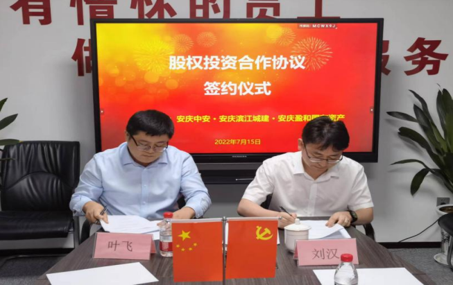 7月15日,安慶中安供應(yīng)鏈管理有限責(zé)任公司與安慶市濱江城市建設(shè)發(fā)展有限公司簽署股權(quán)投資協(xié)議。中安公司總經(jīng)理葉飛,濱江公司總經(jīng)理劉漢分別代表雙方公司進(jìn)行了簽約。